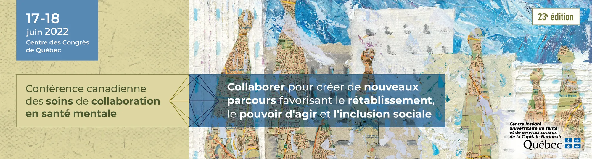 The Centre intégré universitaire de santé et de services sociaux (CIUSSS) de la Capitale-Nationale is pleased to invite you to join us in-person on June 17th and 18th 2022 at the Quebec City Convention Centre or virtually for the 23rd Canadian Collaborative Mental Health Care Conference.