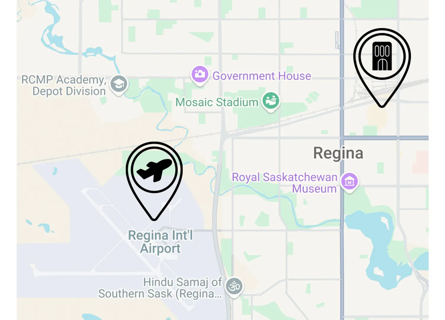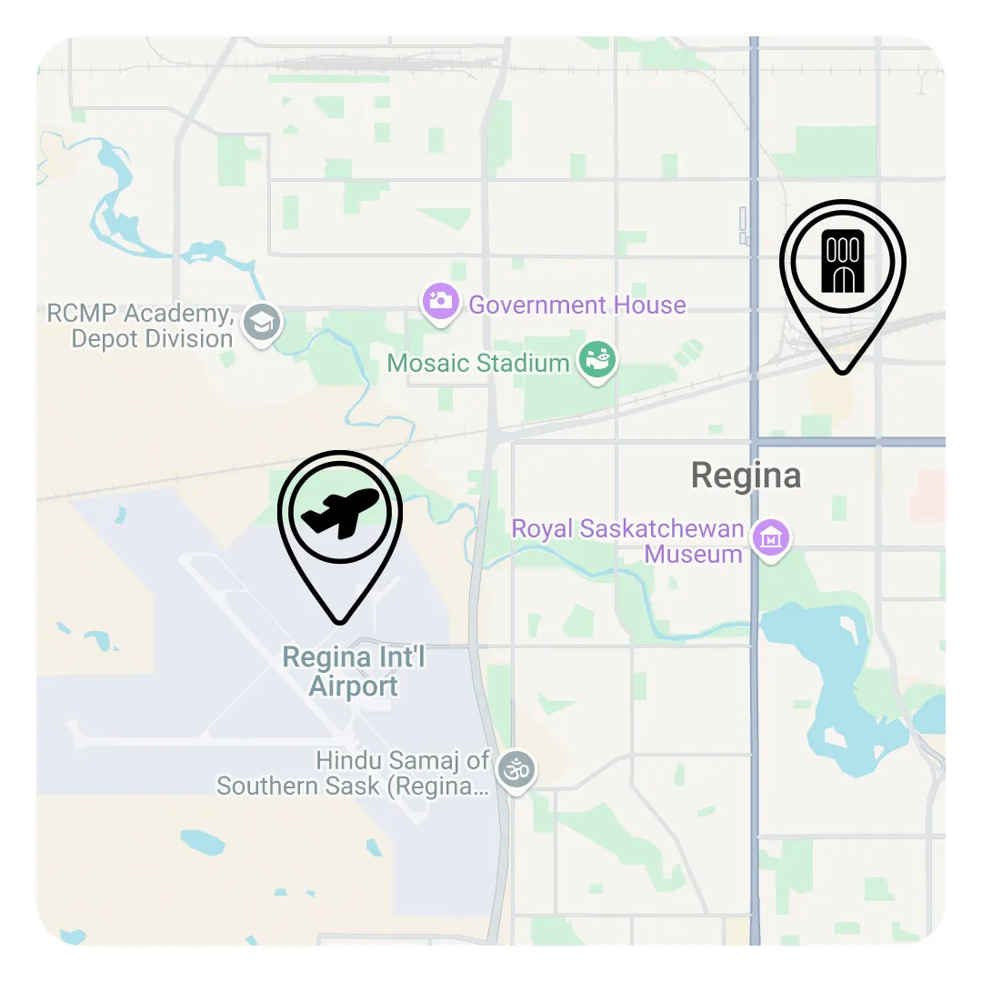 Various transportation services are available for hire. Public transportation from the airport to downtown Regina is also available.