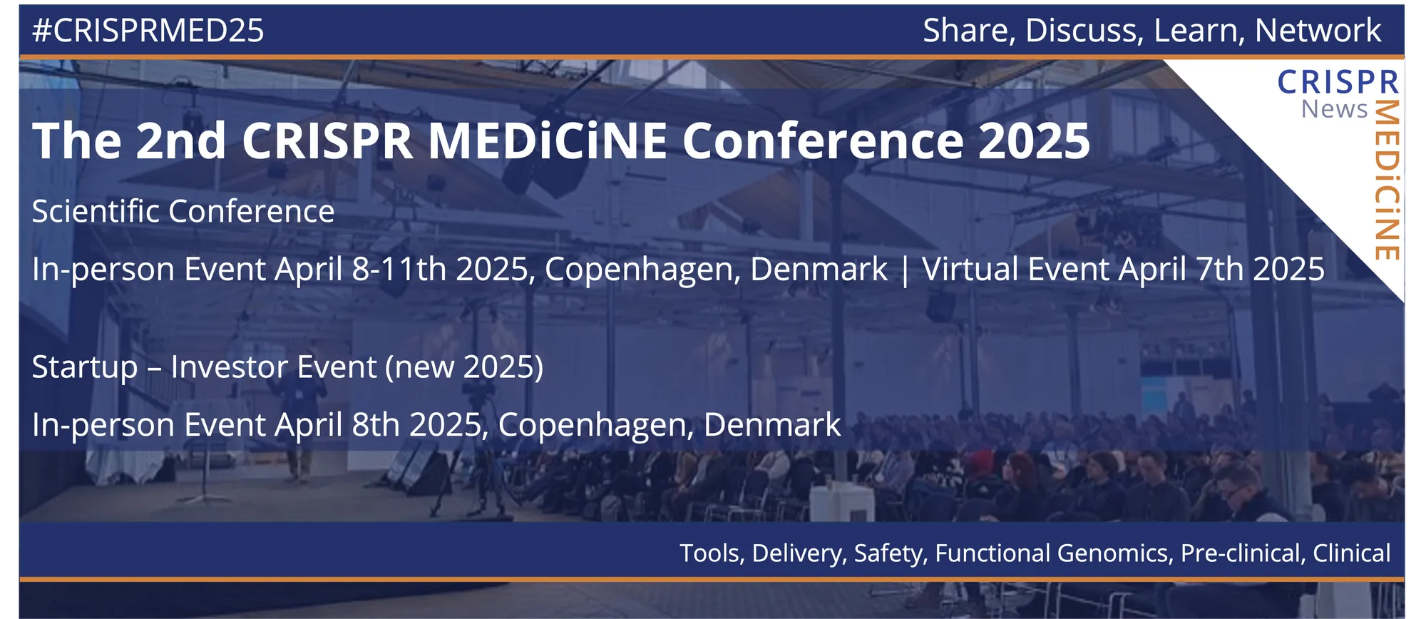 The 2nd CRISPR Medicine Conference (in-person) will take place in Copenhagen, Denmark from the 8th - 11th April 2025 (virtual event 7th April).