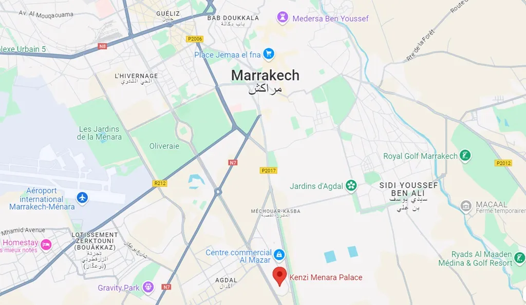 The hotel is located 4 Km from the Marrakech Menara airport (IATA: RAK, ICAO: GMMX).