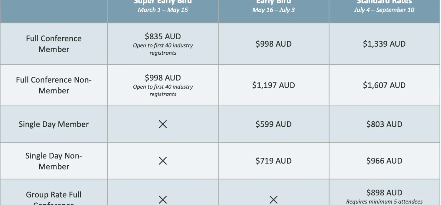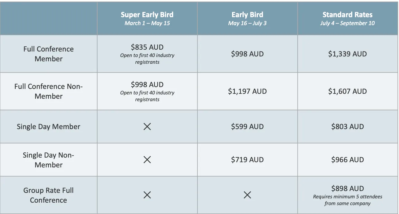Stay tuned for registration details, or register your interest below to be notified when bookings open.
