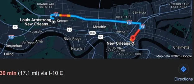 The Louis Armstrong International Airport (MSY) has a recently updated world-class terminal and serves many international flights. MSY is located just outside downtown New Orleans. Multiple options for ground transportation to the hotel venue can be found at their website: