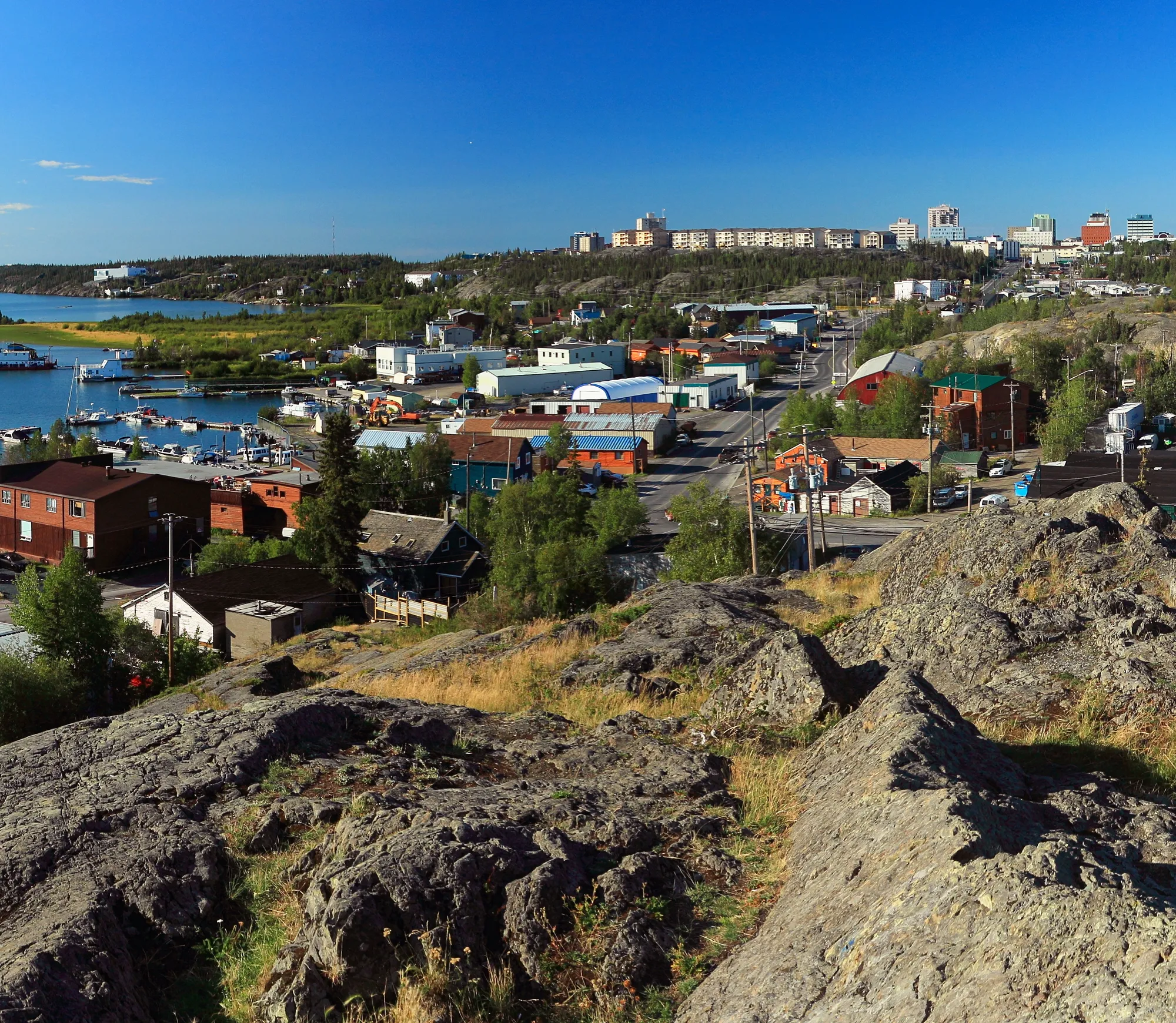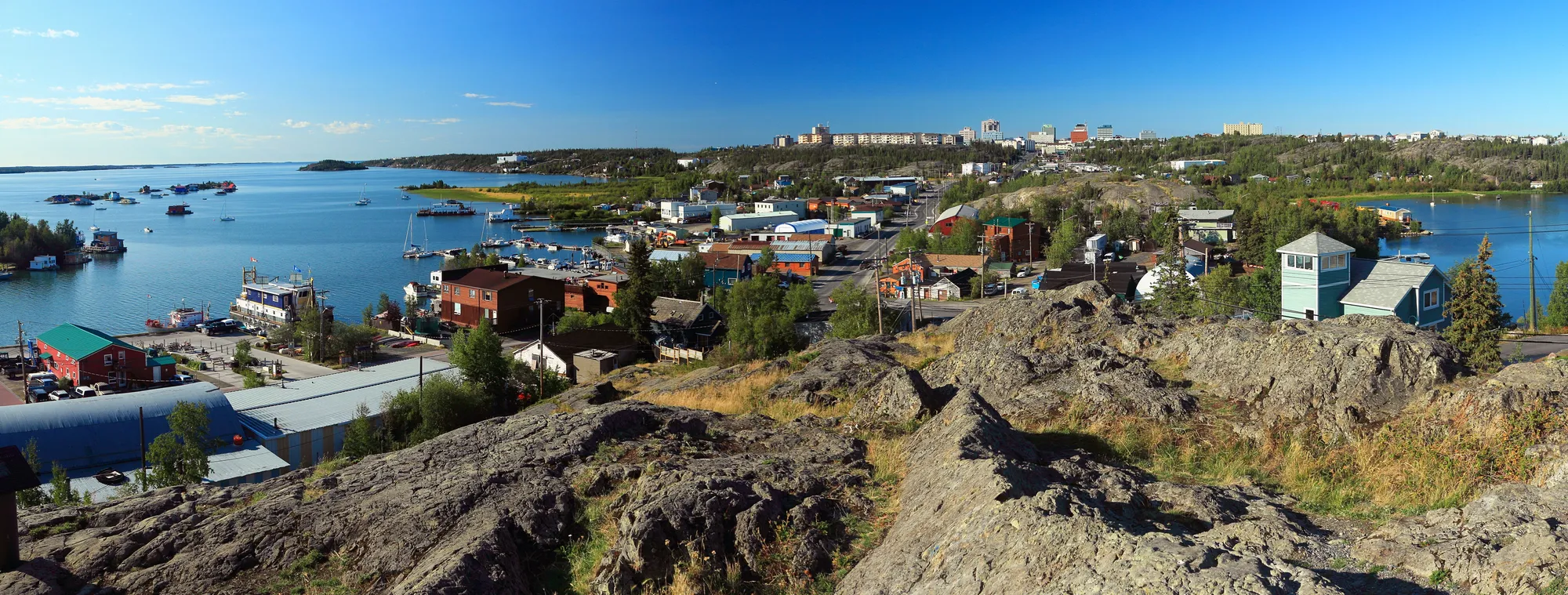 Yellowknife is nestled on the northern shore of Great Slave Lake in the Northwest Territories, Canada.
