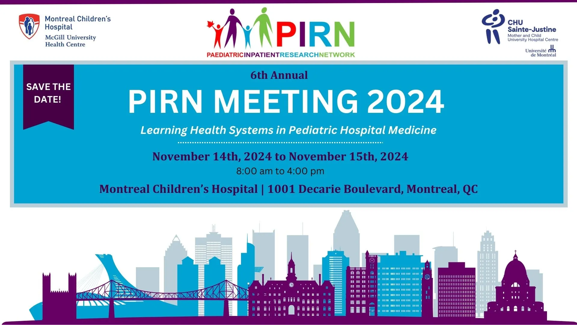The Canadian Paediatric Inpatient Research Network (PIRN) annual meeting committee is delighted to invite you to 6th Annual meeting in Montreal!
