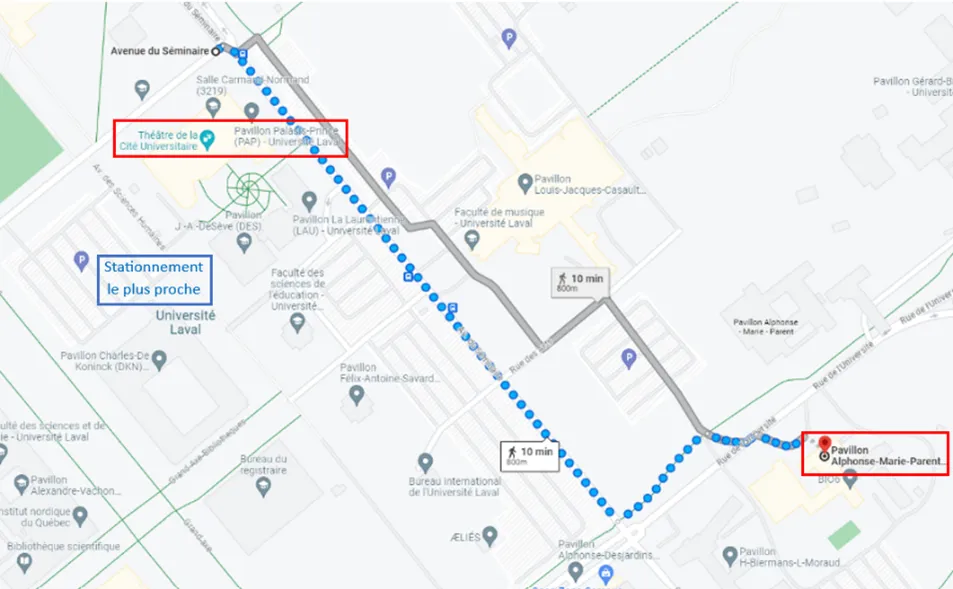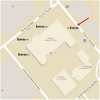 To get to the Alphonse-Marie-Parent Pavilion residences from the Palasis-Prince Pavilion :