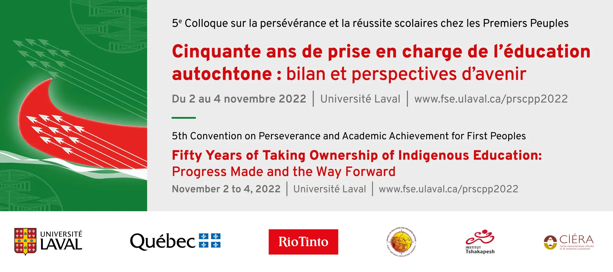 The 5th Convention on Perseverance and Academic Achievement for First Peoples will be held at Université Laval, under the auspices of the Faculty of Education, in Québec City on November 2-4, 2022.